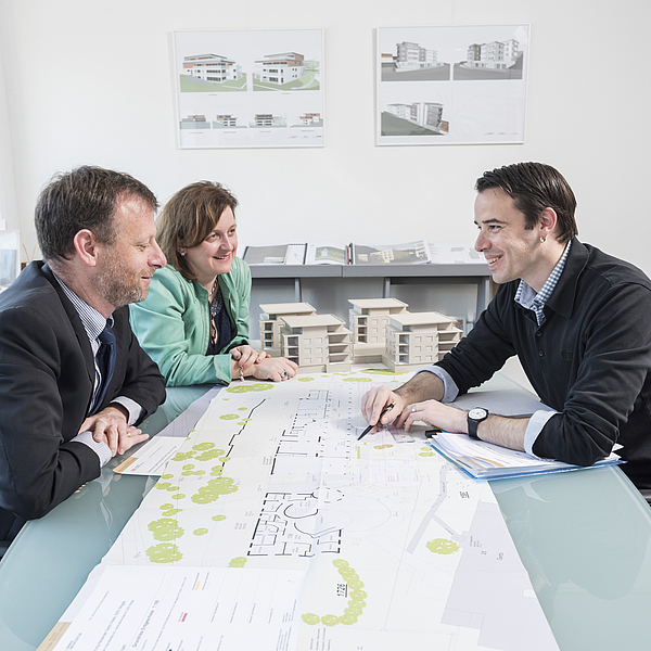 Unsere projektbezogene Arbeit beginnt mit intensiven Gesprächen mit unserer Kundschaft, in welchen die individuellen Bedürfnisse aufgenommen und analysiert werden. Wir geben Ihren Ideen Raum ist unser Leitsatz, bei welchem der Kunde und seine Raumbedürfnisse in den Mittelpunkt gestellt werden. Wir begleiten unsere Bauherrschaften vom ersten Gespräch bis zur Schlüsselübergabe, respektive darüber hinaus. Dafür verfügen wir über die nötigen Fachkenntnisse und bieten unseren Kunden auf ihre jeweiligen Ziele und Bedürfnisse angepasste interdisziplinäre Planerleistungen an.